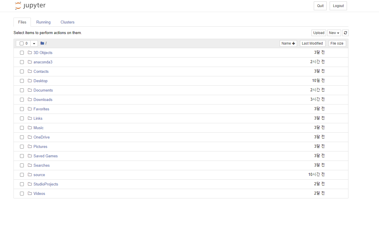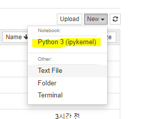 노트북을 실행하면 웹 브라우저가 새로 뜨면(http://localhost:8888/tree) 노트북을 만들어 사용할 수 있다.