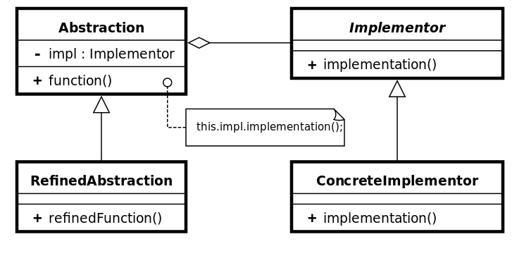 ▷ Implementor: 구현부에 대한 인터페이스를 정의한다.