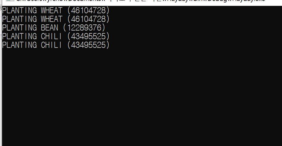 Console.WriteLine("PLANTING WHEAT (" + GetHashCode() + ")");