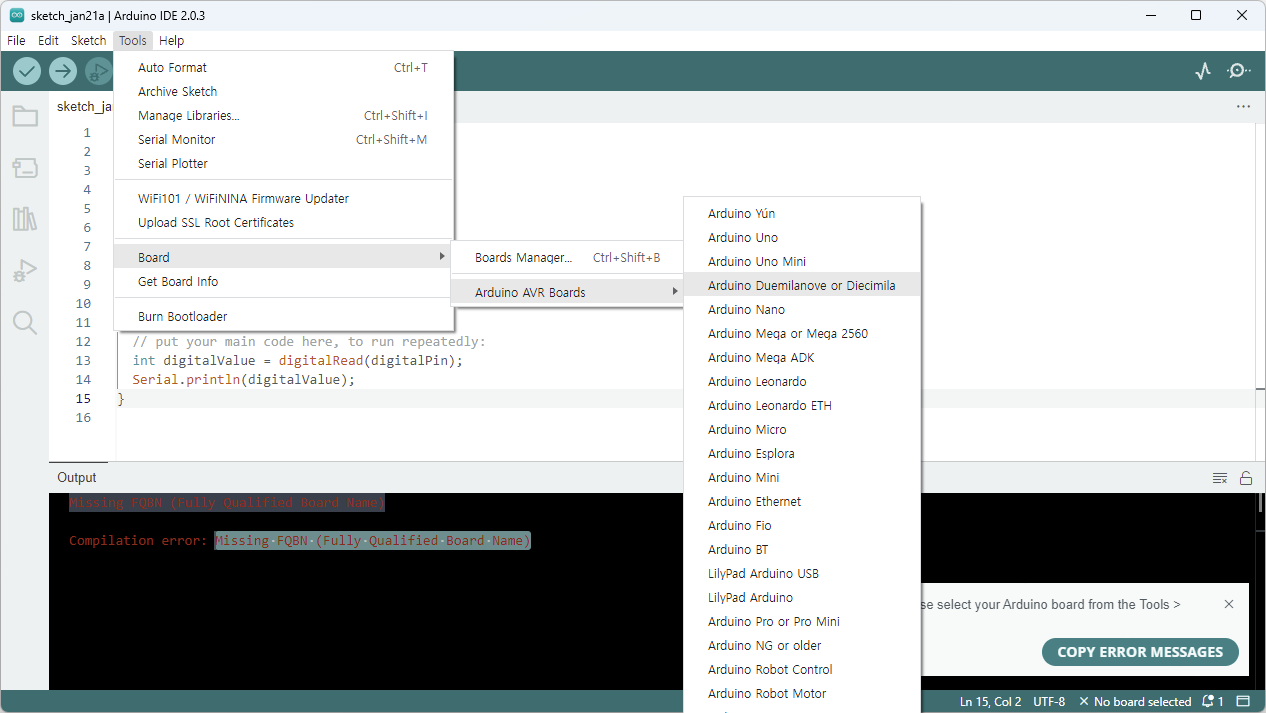 이 에러는 보드를 찾지 못해서 나는것이므로 아래와 같이 보드에 관한 설정을 해줘야 한다.