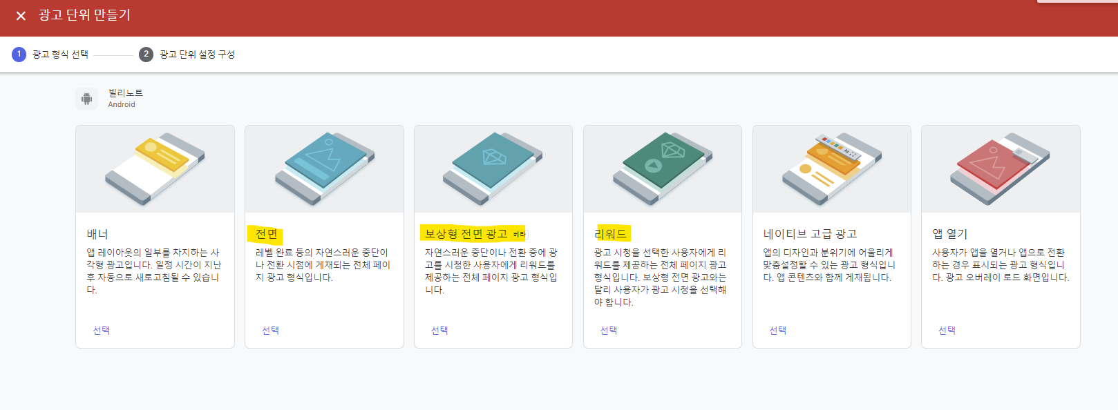 우선 전면 광고 단위를 추가하는 것은 아래처럼 하면 된다.
