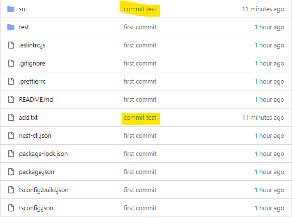 그림에서 처럼 add.txt 파일은 새로 추가 된 파일이고 app.controller.ts 파일에는 주석을 추가했다.